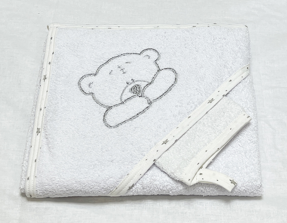 Полотенце с капюшоном и рукавичкой Вышивка (белый)
