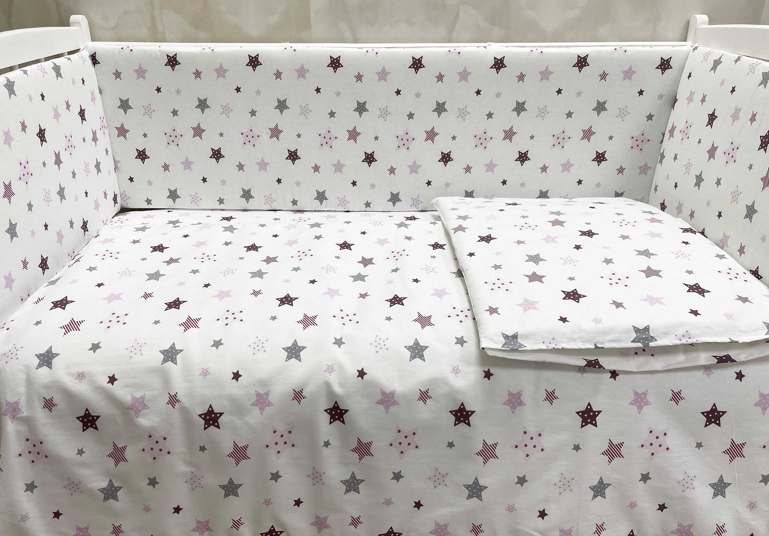 Организация стального места ребенка заканчивается не только приобретением детской кроватки, обязательно необходим комплект в кроватку. Купить его можно на нашем сайте, по низкой цене от производителя.
