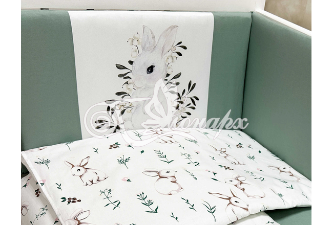 Бортики СО СЪЕМНЫМИ ЧЕХЛАМИ в кроватку: защитят Вашего малыша от ушибов, сквозняков, солнечных лучей и не дадут малышу запутаться в прутьях кроватки. - Простыня на резинке 60х120 см (подходит для стандартной кроватки)