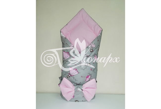 ​Конверт фиксируется поясом на резинке с бантом.