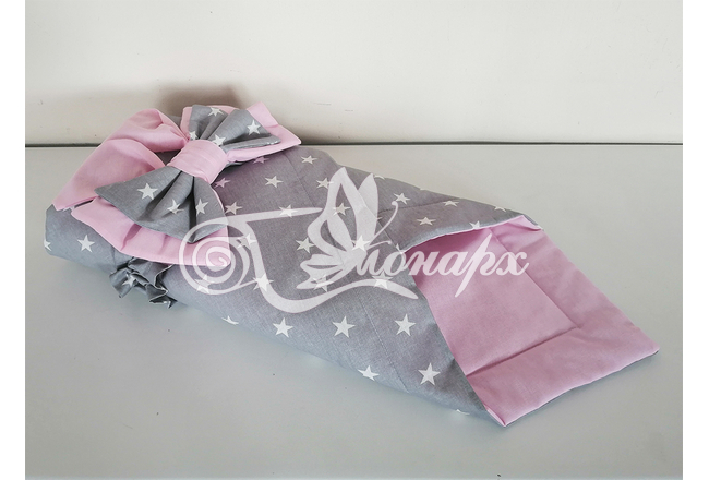 ​Конверт фиксируется поясом на резинке с бантом.
