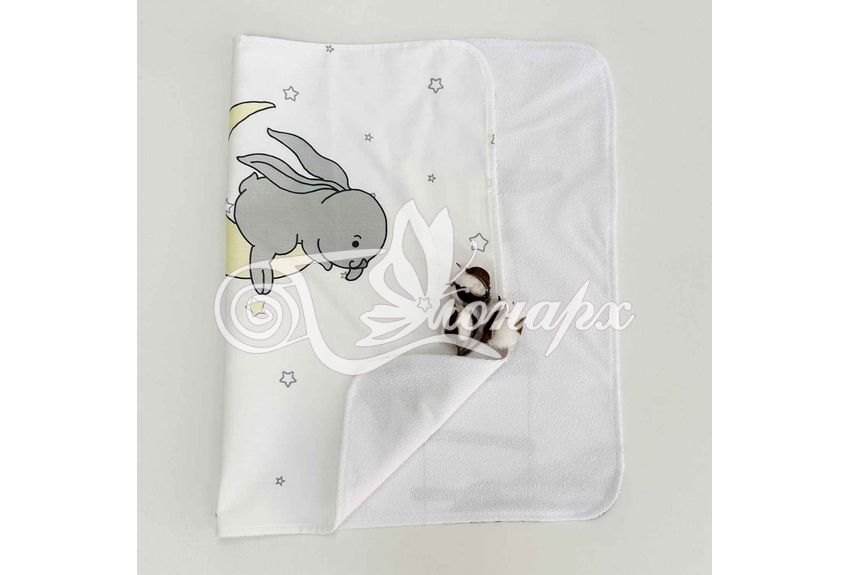 - Верхний слой – мулитон (изготовлена из - мягкой махры и непромокаемого слоя ПВХ). Благодаря такому строению на пеленке комфортно лежать (в отличие от клеенчатого или полиэтиленового непромокаемого слоя).